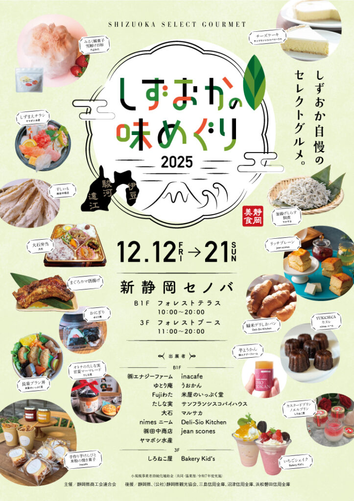 今週末12/12~16の5日間は、静岡市の新静岡セノバで「しずおかの味めぐりフェア」に出店します!(殿のお店はお休みです) 「いつもは店舗でしか食べることのできないあの味や、県内各地の自慢の逸品が新静岡セノバに集まります。静岡ならではの特産品や生産者のこだわりが詰まった逸品を、この機会にぜひお楽しみください。」ということで、しろねこ屋のプリンも「しずおかの味」としてご提供することになりました!